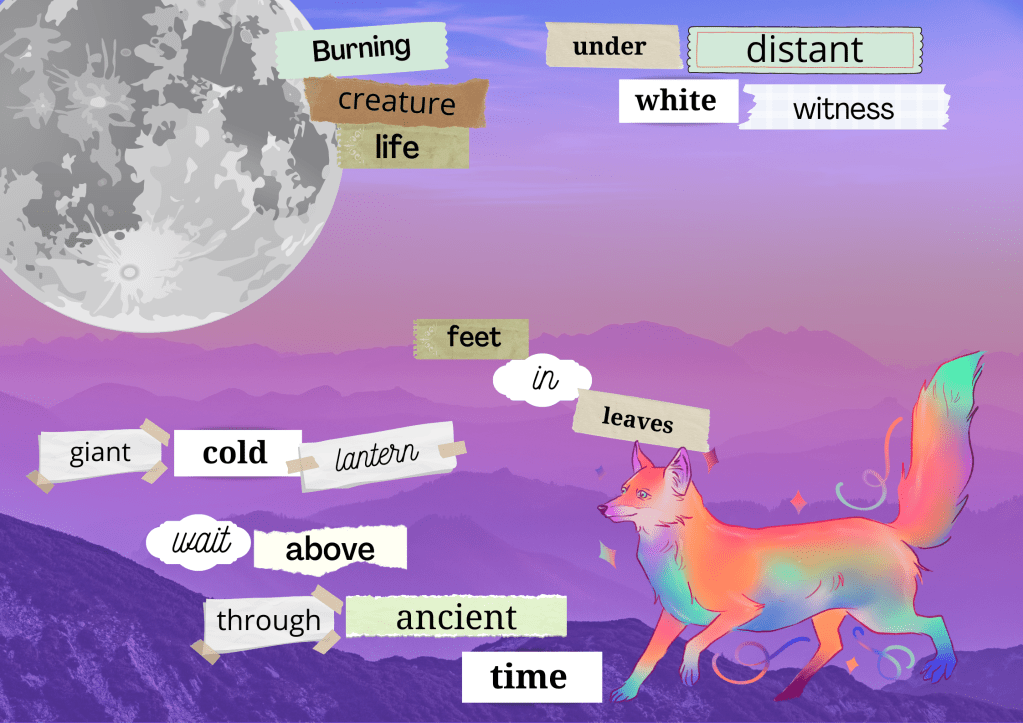 These lines of poetry are combined into a final poem which reflects or describes the scene in the final shared artwork.